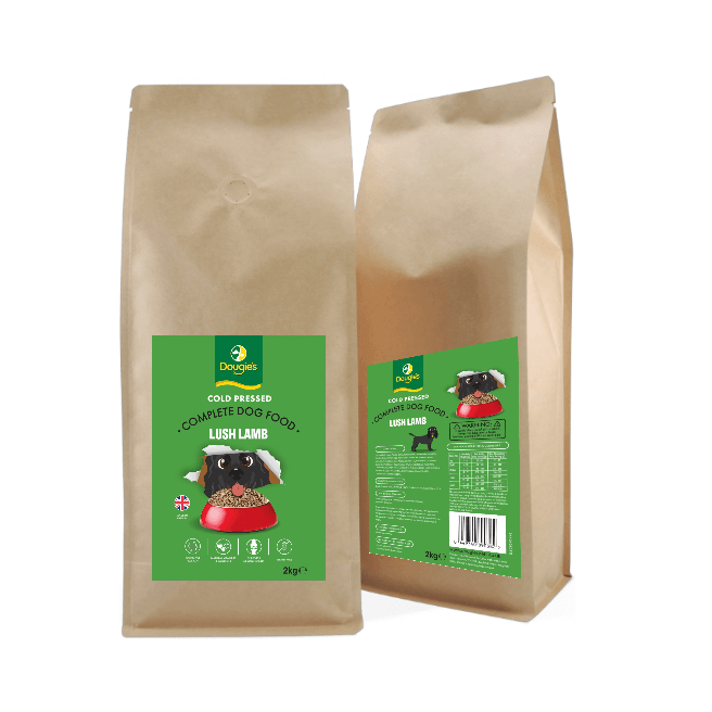 Dougie’s Cold Pressed complete dog food ration uses the finest ingredients. It is gently cold pressed at low temperatures which help retain the natural vitamins and minerals. Unbelievably nutritious and tail wagging delicious.